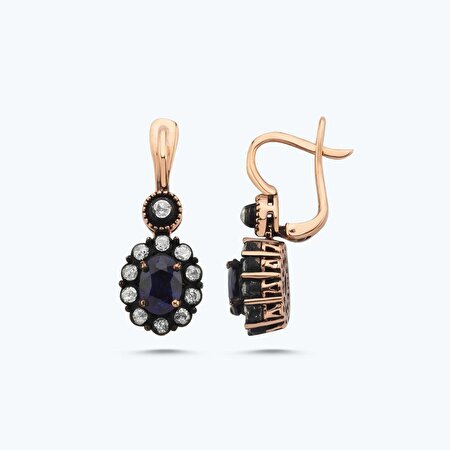 0.42 Karat Elmas Safir Oval Küpe