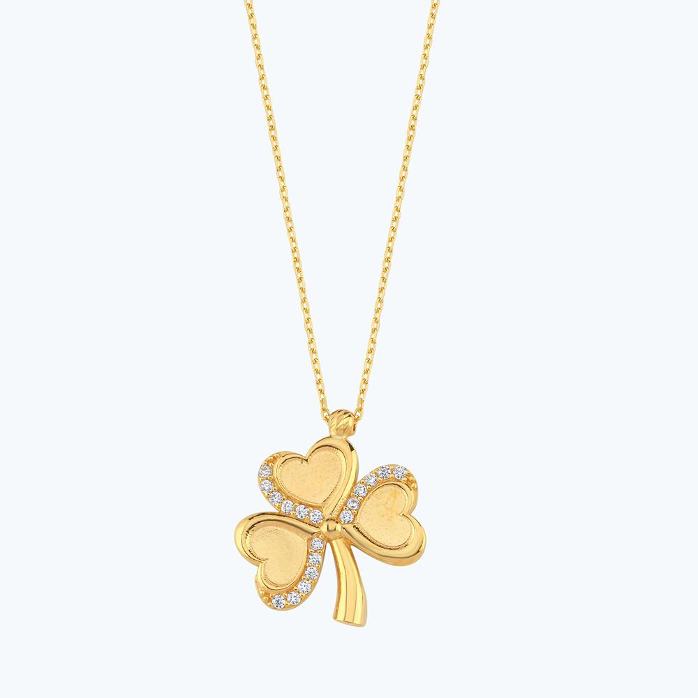 22 Ayar Altın Kalp Yonca Kolye