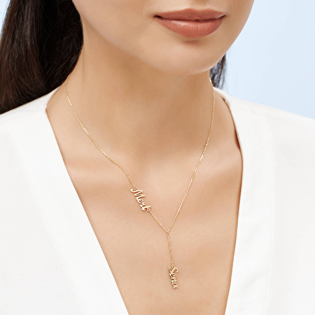 Tasarım detayları büyük bir titizlikle ele alınan altın çift isimli kolye modeli geniş kullanım alanı ve modaya uyumlu tasarımıyla tercih sebebi oluyor. Moda dünyası ile uyumlu olabilecek şekilde tasarlanan altın çift isimli kolye modeli zamansız duruşuyla şıklığınıza farklı bir boyut kazandırıyor.