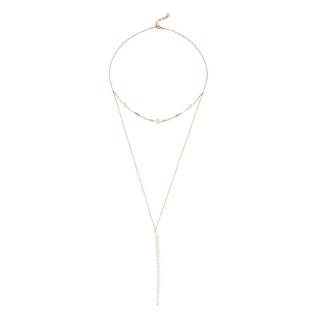 Benzersiz şıklığıyla hayranlık uyandıran tasarım, ince bir zincir kullanılarak dizayn edildi. İkili kolye görünümü sunarken aynı zamanda çok sayıda incinin tasarıma kazandırılmış olması, kolyenin çekiciliğini zirveye taşıyor. En şık davetlerde en zarif kombinlerinizi taçlandırmak için altın inci kolye modelinin bu asil duruşundan faydalanabilirsiniz.