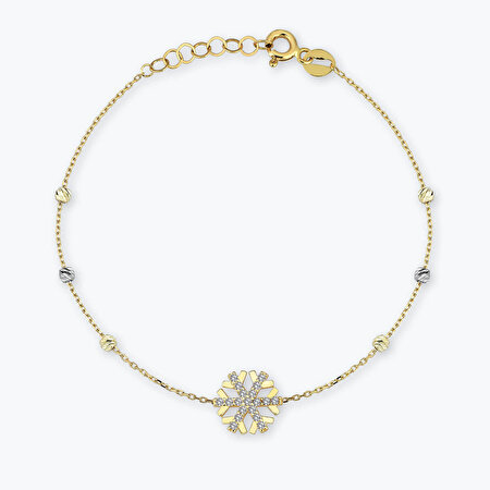 Modern ve dış görünümüne özen gösteren kadınlar için vazgeçilmez olan altın bileklik, kış aylarının en romantik ve değerli sembollerinden kar tanesinin üzerinde yer aldığı alternatif bir tasarımı sizlere sunuyor. Klasik altın bilekliklere iyi bir alternatif arıyorsanız sizler de bu mücevheri değerlendirebilirsiniz.