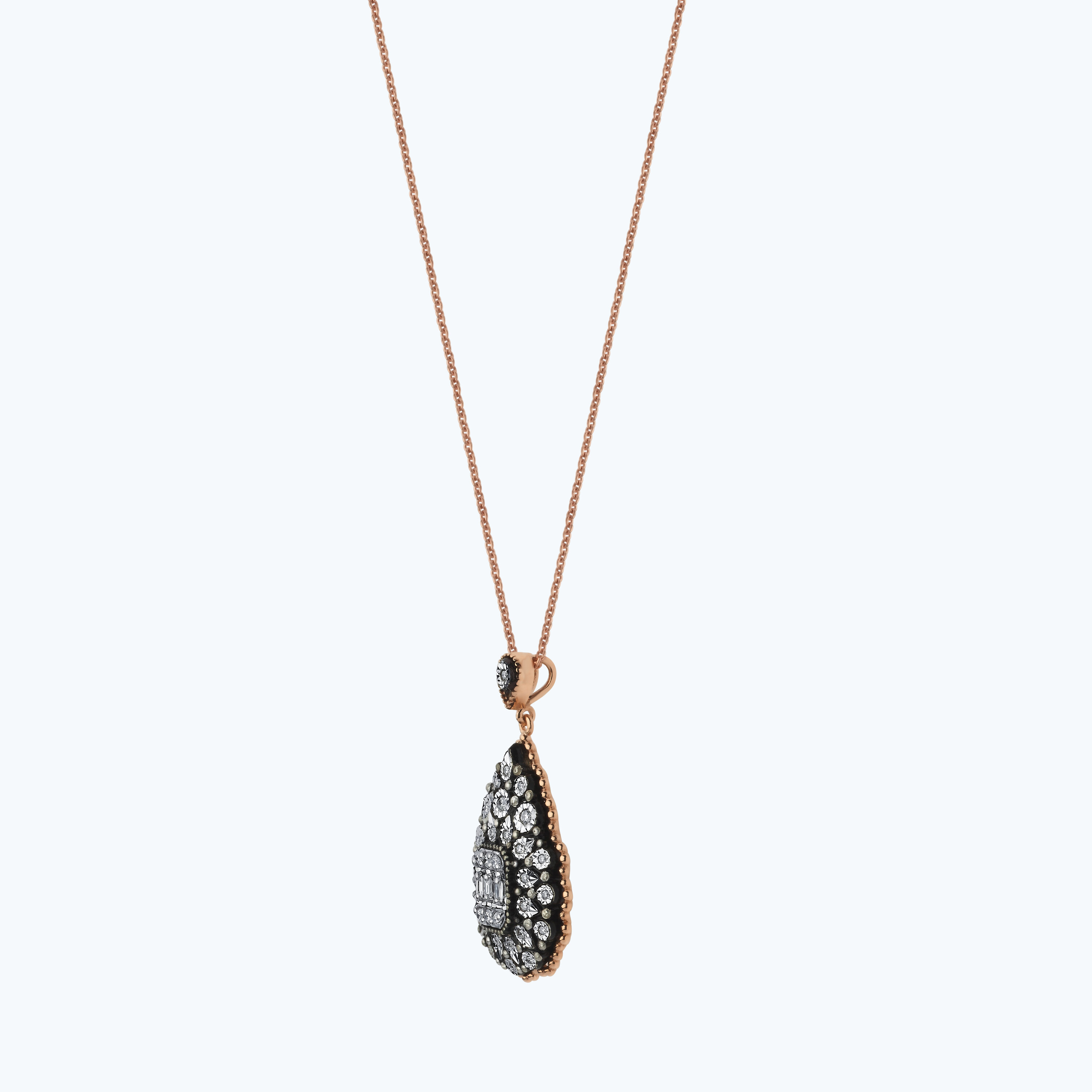 0.25 Karat Elmas Baget Taşlı Damla Kolye