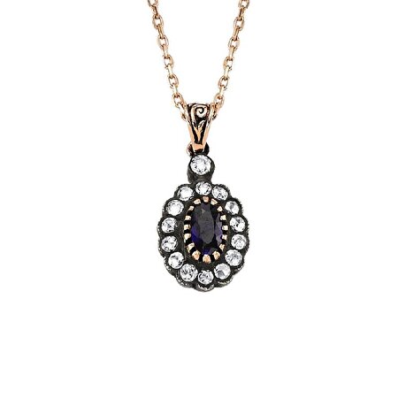 0.43 Karat Elmas Safir Oval Kolye