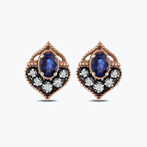 1.20 Karat Elmas Safir Oval Küpe