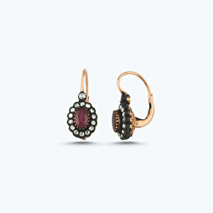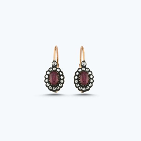 0.56 Karat Elmas Yakut Oval Küpe