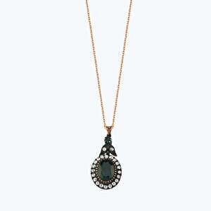 0.41 Karat Elmas Zümrüt Oval Kolye