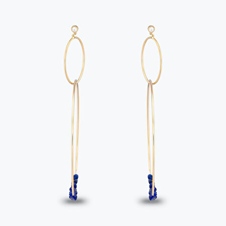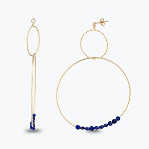Elegan, cesur ve iddialı kadınların tercihi olan lapis taşlı altın halka küpe modeli şıklığınızı taçlandırmak için hazır! İç içe geçmiş bir büyük ve bir de küçük halkadan oluşan küpe tasarımına lapis taşından hazırlanan boncuklar eşlik ediyor. Gök taşı ya da gece taşı olarak da adlandırılan, “göklerden gelen” anlamını taşıyan lapis taşı ise tasarımın büyüleyen bir duruş kazanmasını sağlıyor.