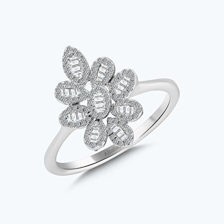 0.24 Karat Pırlanta Baget Taşlı Çiçek Yüzük