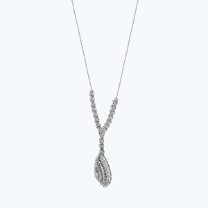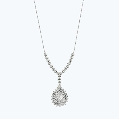 0.88 Karat Pırlanta Baget Taşlı Damla Kolye