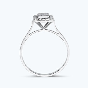 Pırlanta baget yüzük modelinin tasarımında uygulanan özel efektler sayesinde 0.50 karat algısına da sahip olabilmeyi başaran yüzük modeli özel gün ve davetler için kullanıma uygun olduğu gibi aynı zamanda gündelik kullanıma da uygundur.