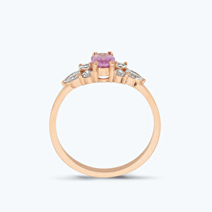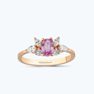 0.95 Karat Pırlanta Pembe Safir Oval Yüzük