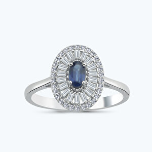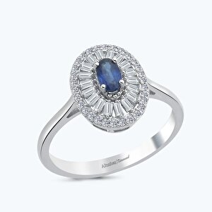 0.65 Karat Pırlanta Safir Baget Yüzük