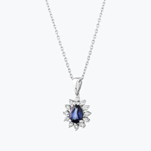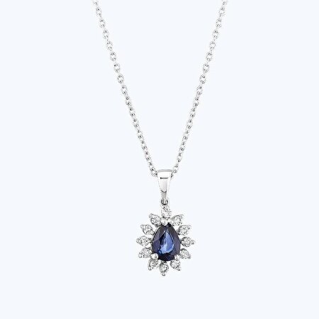 0.92 Karat Pırlanta Safir Damla Kolye