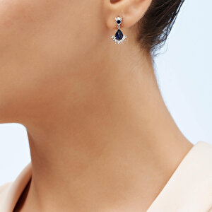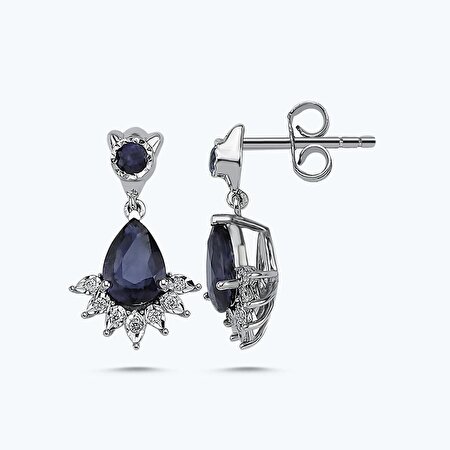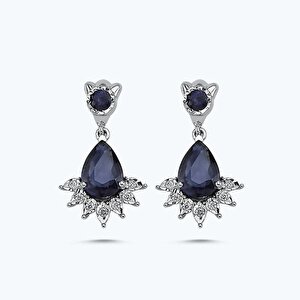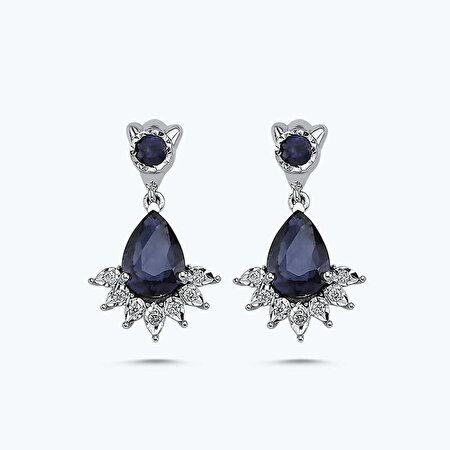 0.07 Karat Pırlanta Safir Damla Küpe