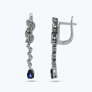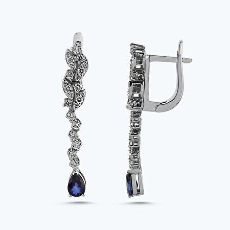 1.61 Karat Pırlanta Safir Damla Küpe