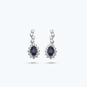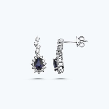 1.95 Karat Pırlanta Safir Damla Küpe