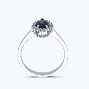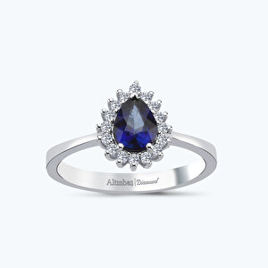 0.87 Karat Pırlanta Safir Damla Yüzük