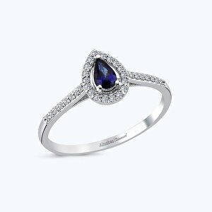 0.17 Karat Pırlanta Safir Damla Yüzük