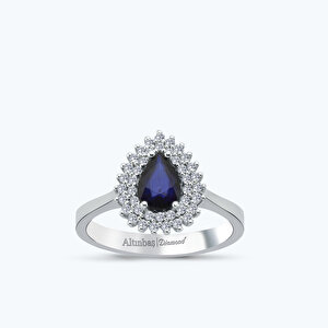 0.96 Karat Pırlanta Safir Damla Yüzük