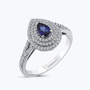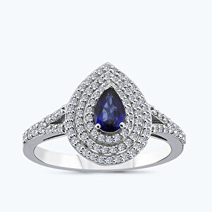 0.81 Karat Pırlanta Safir Damla Yüzük