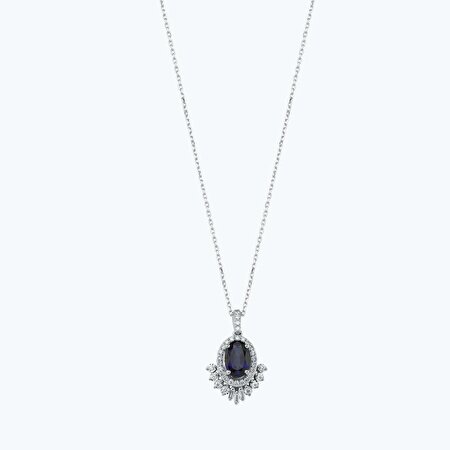 1.32 Karat Pırlanta Safir Oval Kolye
