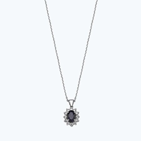 1.10 Karat Pırlanta Safir Oval Kolye