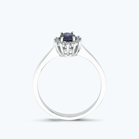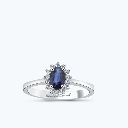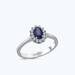 0.12 Karat Pırlanta Safir Oval Yüzük