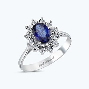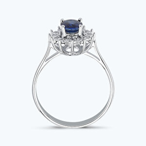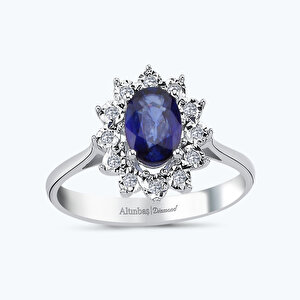 0.06 Karat Pırlanta Safir Oval Yüzük