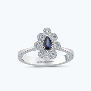 0.48 Karat Pırlanta Safir Damla Yüzük