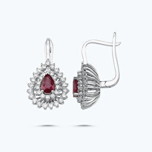 0.88 Karat Pırlanta Yakut Damla Küpe