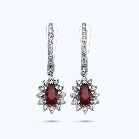 1.76 Karat Pırlanta Yakut Damla Küpe