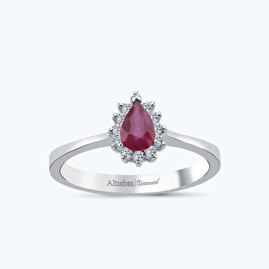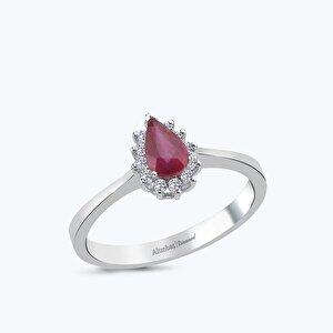 0.58 Karat Pırlanta Yakut Damla Yüzük