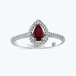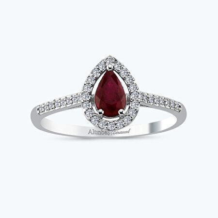 0.63 Karat Pırlanta Yakut Damla Yüzük