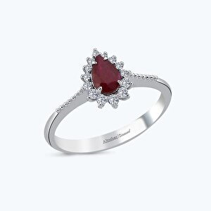 0.48 Karat Pırlanta Yakut Damla Yüzük