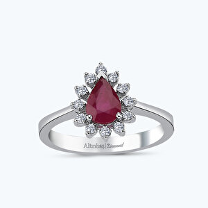0.55 Karat Pırlanta Yakut Damla Yüzük
