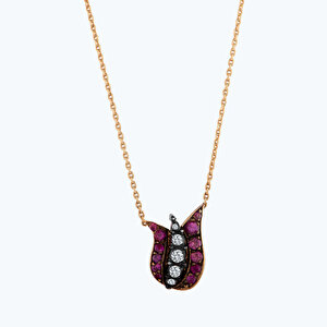 0.71 Karat Pırlanta Yakut Lale Kolye
