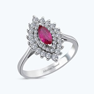 0.87 Karat Pırlanta Yakut Markiz Yüzük