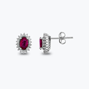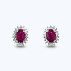 1.20 Karat Pırlanta Yakut Oval Küpe
