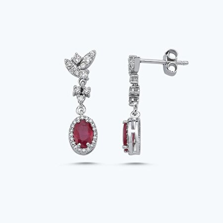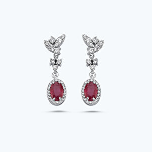1.33 Karat Pırlanta Yakut Oval Küpe