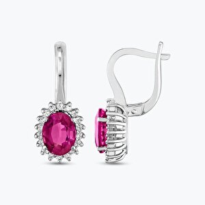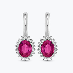 3.88 Karat Pırlanta Yakut Oval Küpe