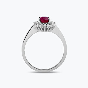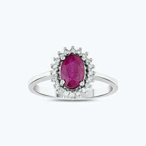 0.88 Karat Pırlanta Yakut Oval Yüzük