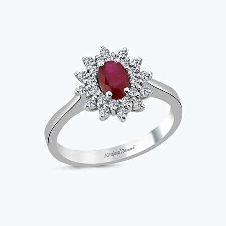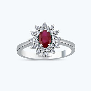 0.56 Karat Pırlanta Yakut Oval Yüzük