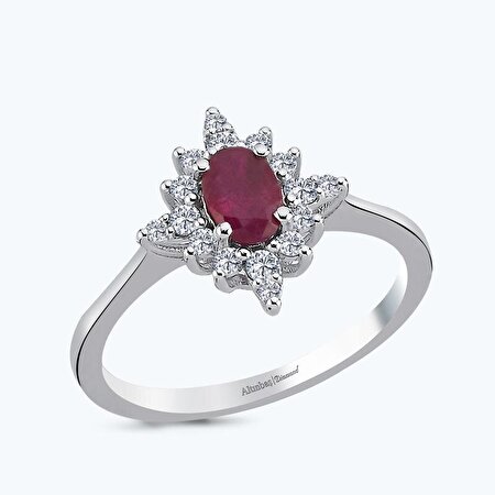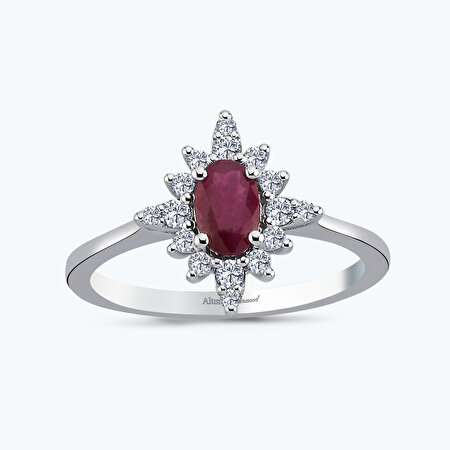 0.73 Karat Pırlanta Yakut Oval Yüzük