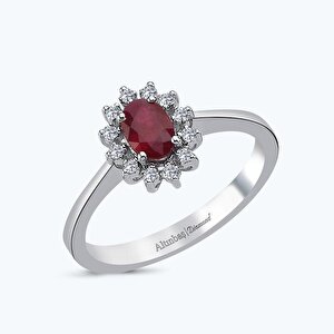 0.66 Karat Pırlanta Yakut Oval Yüzük
