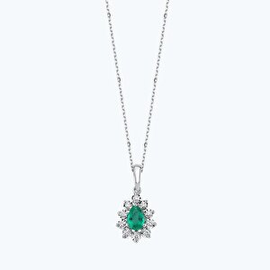 0.45 Karat Pırlanta Zümrüt Damla Kolye