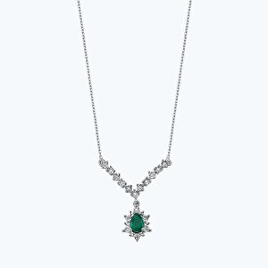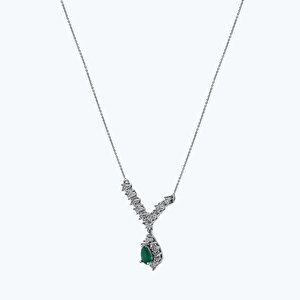 0.06 Karat Pırlanta Zümrüt Damla Kolye