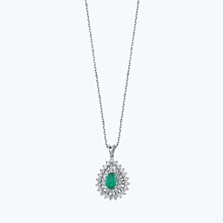 0.92 Karat Pırlanta Zümrüt Damla Kolye