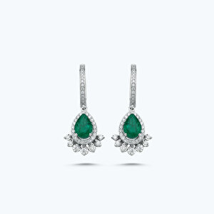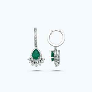 1.63 Karat Pırlanta Zümrüt Damla Küpe