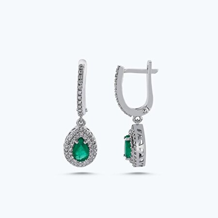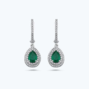 1.49 Karat Pırlanta Zümrüt Damla Küpe