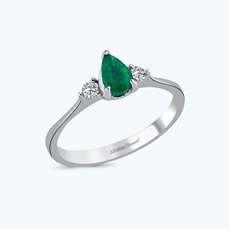 0.50 Karat Pırlanta Zümrüt Damla Yüzük
